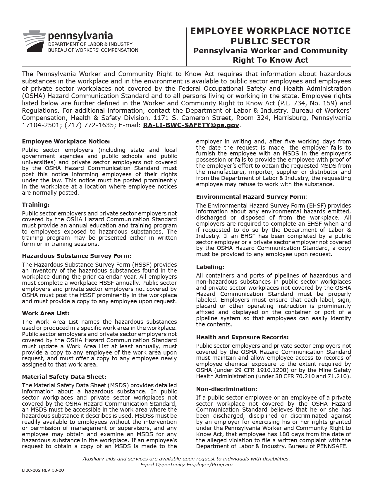 Pennsylvania Right to Know Act Poster