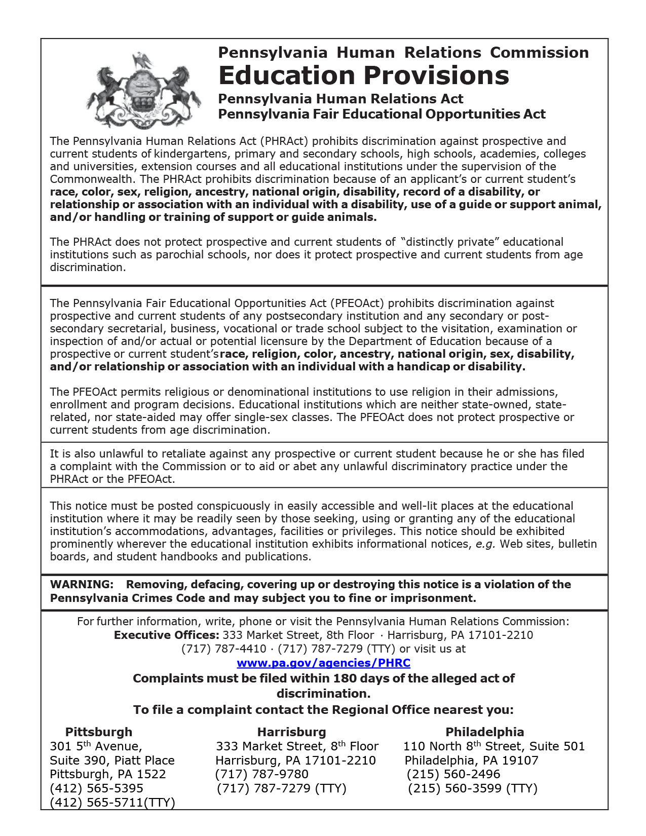 Pennsylvania Fair Education Provisions Poster