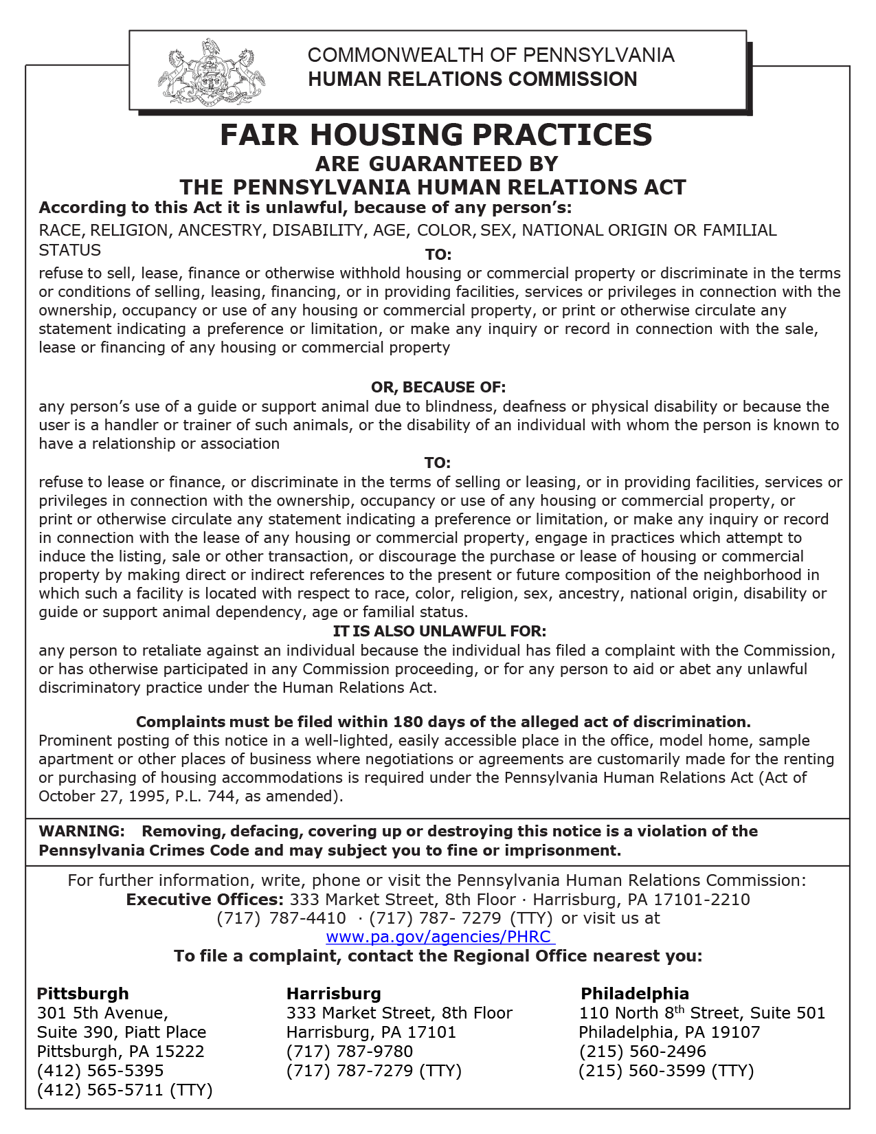 Pennsylvania Fair Housing Practices Poster